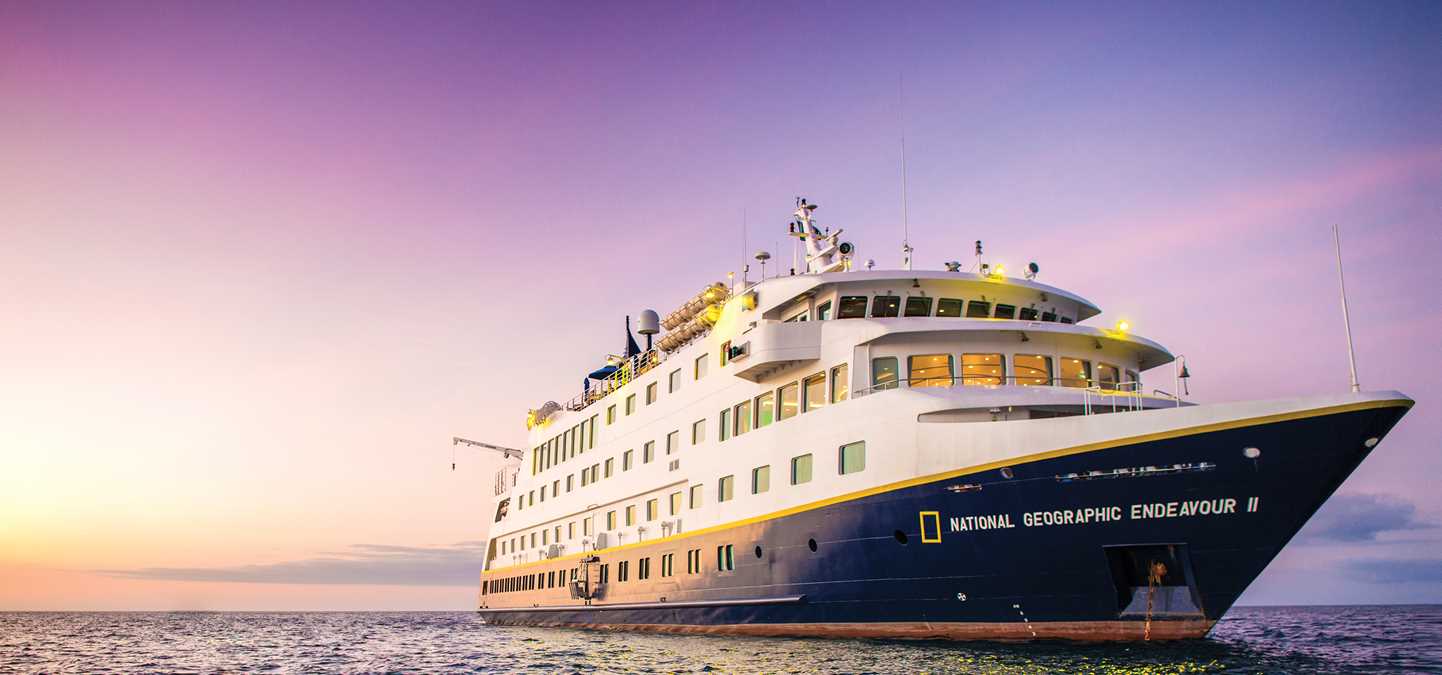 Born in the cold waters of Patagonia, National Geographic Endeavour II was built for heavy seas. Now, permanently stationed in Galápagos, she comfortably sails the Equator.