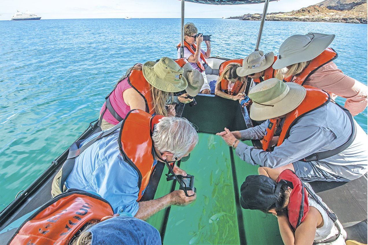 Zodiacs to get to shore quickly, glass-bottom boat, kayaks and paddleboards for personal explorations, snorkel gear and wetsuits for both adults and children, video microscope and underwater video camera.