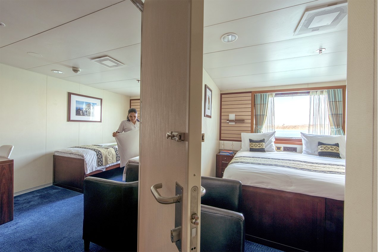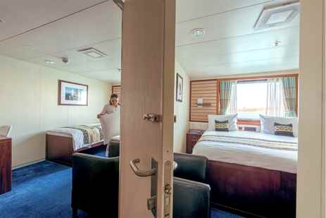All feature ocean views, private facilities, climate controls, and hair dryers, plus Ethernet, Wi-Fi connections and USB ports for mobile devices. Choose from suites on two decks, plus connecting cabins and triples are available for families and friends.