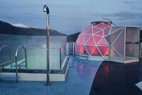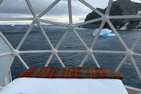 The Points Guy correspondent Gene Sloan spent a cozy night in one of the geodesic glass igloos perched atop the observation deck on National Geographic Resolution—an experience available to all guests on a first-come, first-serve basis.