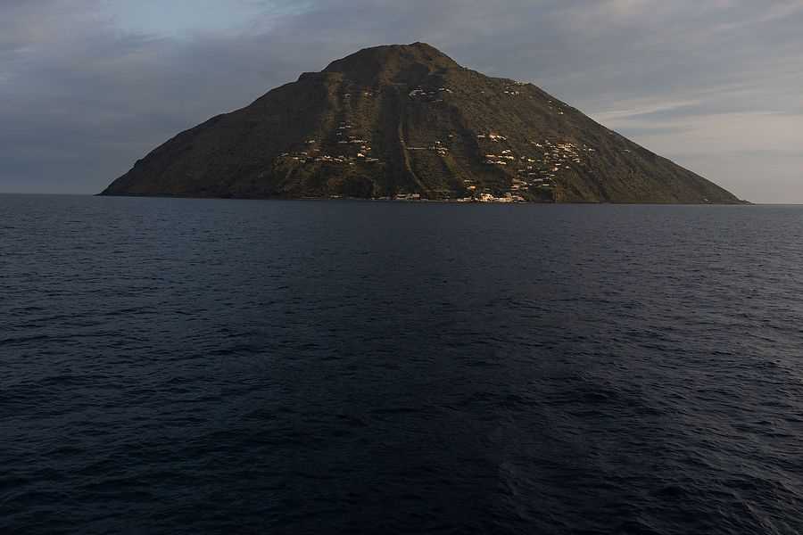 Aeolus was the god of the winds, and he challenged us today with headwinds on our visit to the Aeolian Islands. It’s very difficult to sail into headwinds on a square-rigger, so today we opted for motor power to weave through the seven spectacular volcanic Aeolian Islands, getting close looks at the dramatic and differing characteristics of each one. Remote Alicudi and Filicudi to the west, caper covered Salina where the academy award-winning movie Il Postino was filmed, Vulcano which gives its name to the geologic feature we know today, and our afternoon landing site of Lipari, which was one of the most important prehistoric sources of the volcanic glass obsidian, the sharpest natural edge known to man before the development of bronze. After Lipari we cruised past the posh resort island of Panarea, whose partially submerged collapsed crater makes it the only island suitable for private yacht anchorage, and finally the active perfect cone of Stromboli, puffing with small eruptions every 20 minutes or so.