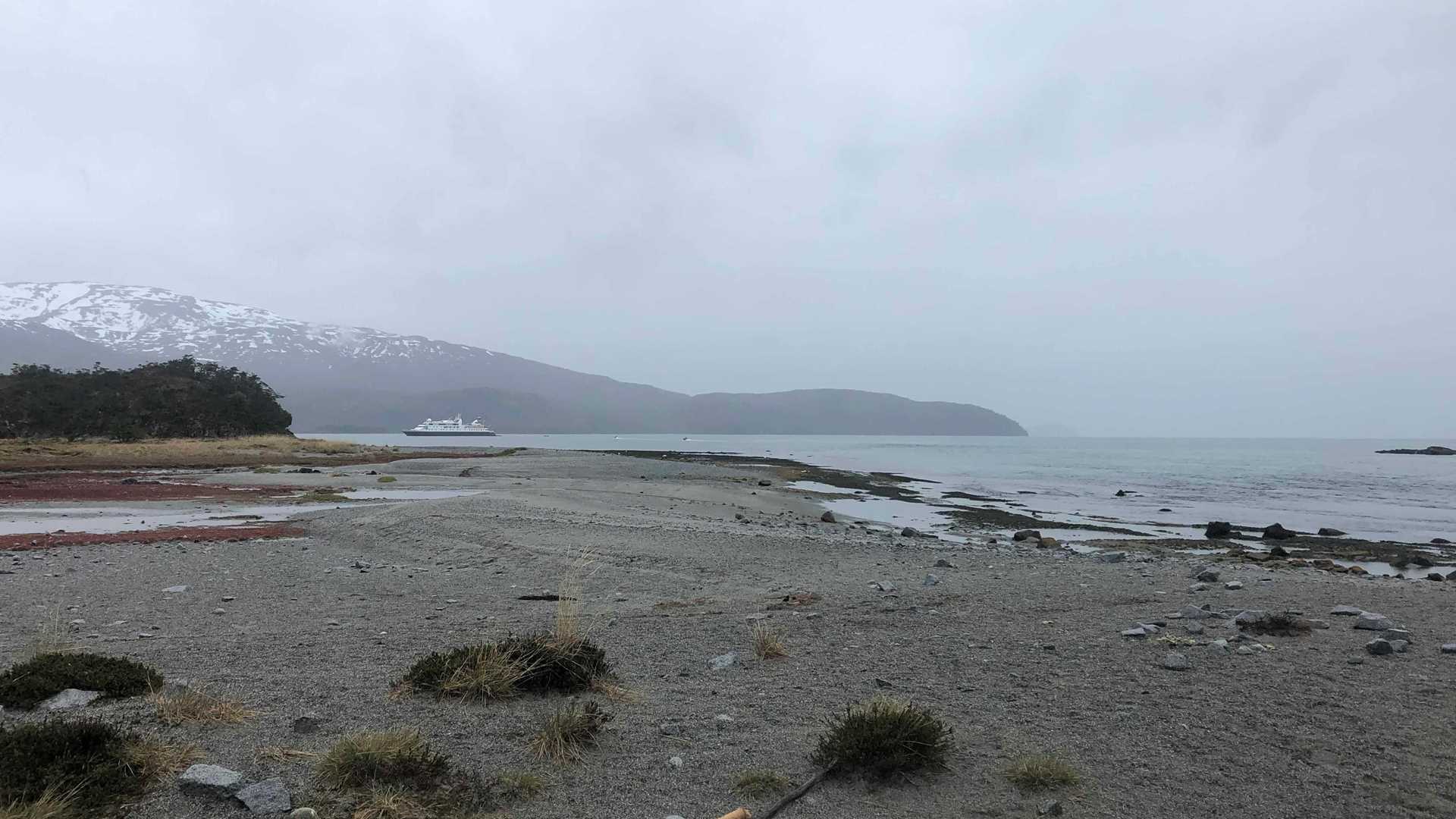 This morning we found ourselves in Ainsworth Bay, with the Marinelli Glacier peeking at us from around the corner. Marinelli is the fastest receding glacier in all of South America, and as we took Zodiacs to shore, we could see the terminal moraine which was an indication of where the glacier stood one hundred years earlier. Photographic evidence shows that it has receded 100 km since 1913.