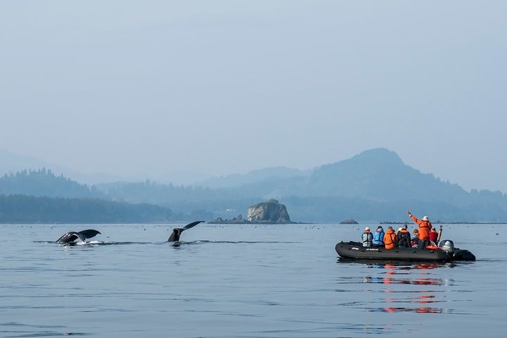 After a night of gentle rocking as we sailed through the Shelikof Strait, we awoke to a perfectly calm morning and found National Geographic Orion anchored in Geographic Harbor on the Katmai coast. Katmai National Park is a massive park, on the southern coast of mainland Alaska that is home to the well-known Brooks Falls. We were set to explore the lesser traveled and rugged coast of this beautiful park while looking out for our favorite bruins, the brown bear. The many small bays along this coastline are usually filled with brown bears that come down from the hills to feed on the sedges in the flats and salmon in the streams.