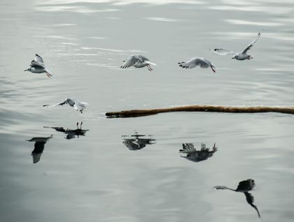 As we sat down to a light lunch, our vessel’s engines started up and slowly we moved away from the Government dock and continued our journey south down Johnstone Strait. As lunch was finishing an announcement came from the bow: a very large group of Pacific white-sided dolphins had been spotted! More than 300 animals were frolicking in ideal conditions—blue skies, light air, and gorgeous light! We could hear many animal breaths and watch their leaps in the air. As the Sea Lion turned and maneuvered, many a dolphin came in close and rode our ship’s wake. Cameras were firing off thousands of frames...and many of us still riding a wave of the friendship extended in Alert Bay, said only, “What a lovely cap to our day!”