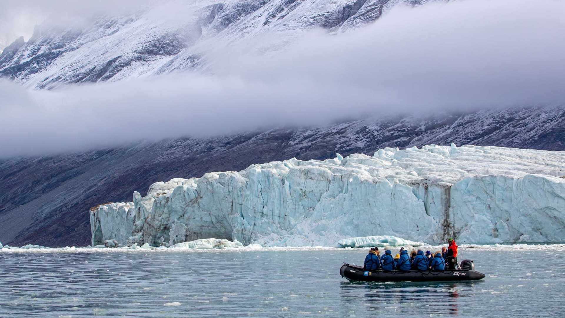 After a snowy passage north, we woke at the mouth of Alpefjord in time to watch the fog dissipate and the snow-dusted mountains of Greenland National Park appear from within. We spent the early morning exploring the fjord system, and we encountered several groups of muskoxen from the ship. By the time breakfast had finished, the mountains were reflected in the glassy fjord, and we had arrived at a spectacular glacier. Naturally, we launched the Zodiacs for a two-hour cruise amongst the incredible scenery. I am not sure that anyone on board expected today to be so stunning. After a burger lunch, we went ashore for some hiking on the tundra and were lucky enough to encounter a group of muskoxen.