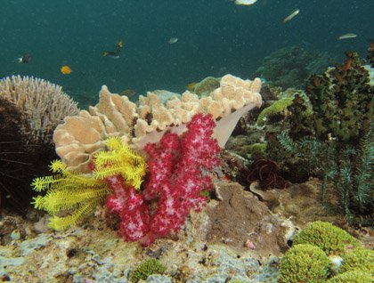 Twenty five years of marine studies had not prepared me for this awe inspiring display of reef brilliance. As countless species of wrasse, parrotfish, surgeonfish, and grouper danced below us, my eye was drawn to an even more bizarre spectacle. A bright orange and purple blob, sat flushing water through a set of incoming and outgoing siphon holes. As I dove down for a closer look, it was obvious that the unusual spectacle was an advanced invertebrate known as a sea squirt or ascidian. Despite its simple appearance, the animicule boasts a complete central nervous system with a brain and a beating heart. Their simple lifestyle involves nothing more complex than filtering water in the endless quest for oxygen and nutrients. As I popped back to the surface and looked around the magical bay, a simple thought reached my contented brain... Alyui Bay was indeed a magical heartbeat in the middle of the coral triangle.