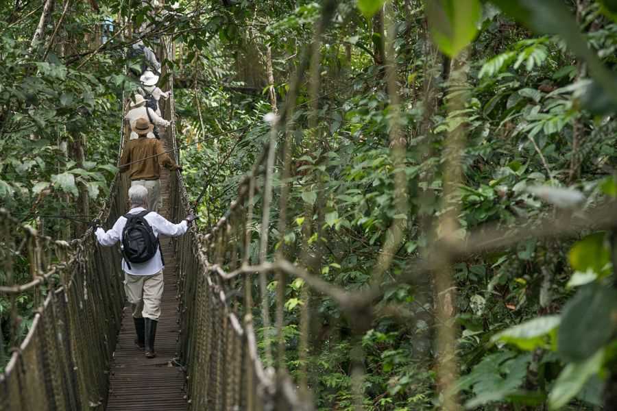 Today we spend the morning on foot at the Amazon Natural Park. We hiked through the forest, stopping to inspect the flora and fauna along the way, before we walked on a bridge through the jungle canopy. In the afternoon we split into groups of kayakers or skiff riders and set out on Nauta Caño for wildlife watching. As a special treat, after dinner we went on a walk in the jungle under the full moon where we observed the different sounds and rhythms of the forest at night.
