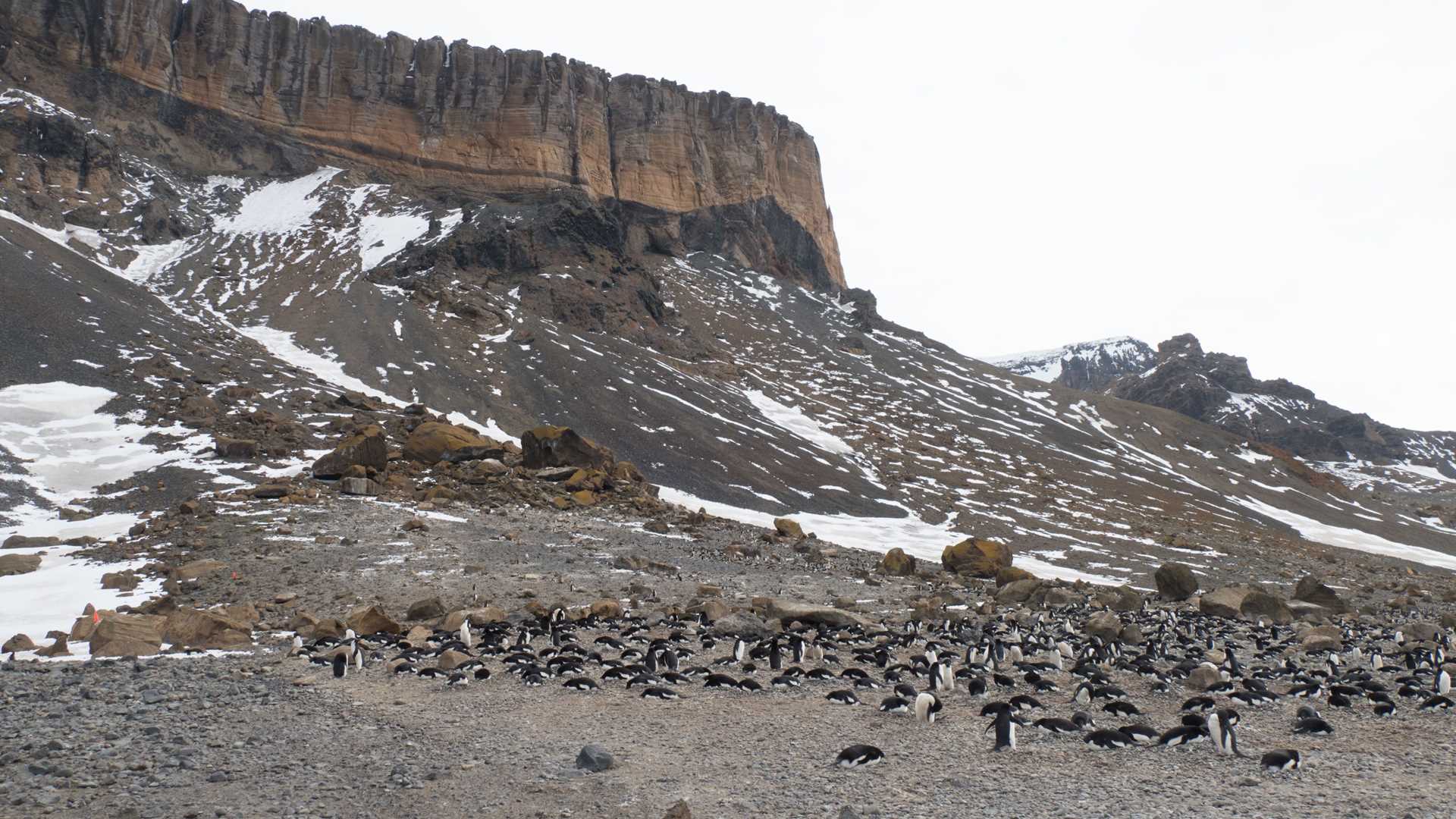 After lunch, we returned to Antarctic Sound for our afternoon landing at Brown Bluff. This location is always a favorite with a visit to a beach full of nesting gentoo and Adelie penguins. At this time of the year, the birds are almost all on eggs and it was our goal to spot partners trading off the duties of incubating the eggs. Those with patience and keen senses of observation were treated to pair bonding displays, repositioning on the eggs, and even some mating between the birds who were a bit late and perhaps a bit too immature in their breeding cycle.
