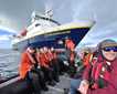 Kinnes Cove is a beautiful spot with a sizeable Adelie penguin population reaching impossibly high up on the crest of rocky cliffs and steep snow slopes. The tabular icebergs both near and far from our Zodiac cruise and kayaking areas provided a stellar backdrop to the porpoising penguins and sparkling waters. One of the most endearing aspects of watching Adelie penguins from the Zodiacs or kayaks is waiting for a group to approach the water’s edge and decide when and whether to dive in.