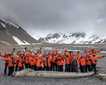 After leaving South America behind and traveling for a day to the Falklands, we awoke off the islands feeling some uncertainty, much like the rest of the world. What would our future hold? We were all healthy onboard and in good spirits, so when the news came that we couldn’t disembark immediately, it was met with mixed reactions. It was determined that we would need to wait a few days (about five) until we reached a safe quarantine since our last contact with new people. At first, this seemed harsh. But in reality, it was probably better for everyone involved. We wanted to know we were all healthy, and we didn’t want to spread anything as we dispersed. And, being on board a healthy ship is a great thing. We not only had endless food, drink (wine!), and TOILET PAPER! We were onboard National Geographic Orion ! The crew were ready to spoil us like always, and the staff were ready to step up with a series of presentations and activities. For the first few days, we were cruising back and forth on the calm, leeward side of the islands. Albatross and other seabirds surrounded the ship continuously and Peale’s dolphins repeatedly came in to bow ride. We even encountered a pod of killer whales and spent quality time with these top predators. Our sister ship, National Geographic Explorer , also provided a fun interlude. After disembarking their guests, they were able to make a supply run to us for essentials. They passed off some fruits and vegetables, some technical engine equipment, and an entire Zodiac of TOILET PAPER! I’m not sure if it was necessary or a great joke, but something we all still talk about! Yes, we were isolating ourselves from the rest of the world, but not from each other. We could still do whatever we wanted, just onboard. Many became “Nolanites,” circling the upper deck getting exercise while enjoying some fine weather. Full gourmet dinners continued, cocktail hour was even more popular, and many guests formed their own groups doing various things they love. We then anchored for a few days in a sheltered bay and had many presentations to entertain ourselves and learn even more about the region. As our time passed, Lindblad Expeditions was constantly updating us and planning. We were ready, our time had come, and then the weather threw us a curveball. Heavy winds were coming, and the Falklands closed the airport for a day. The office scrambled again, rebooking not only charter flights, but flights for every guest and staff to their homes. And then, finally, it came together. A charter flight to Santiago, Chile, where we said goodbye to some of our fellow shipmates from South America. Then onto a Boeing 767 Dreamliner, chartered back to Miami. It was a shock to all of us, who were used to socializing in fun, close groups onboard, to reach the ghostly airport of Miami where no one was approaching anyone. From there, we dispersed and headed home. We left behind National Geographic Orion . The crew are still there. They will be there for awhile, navigating in this new uncertainty. My thoughts are with them. They showed us all much love and great hospitality. I know that myself and quite a few others certainly considered staying onboard. Destination…unknown? But, being National Geographic Orion , I am sure they are having fun right now and enjoying themselves very much.
