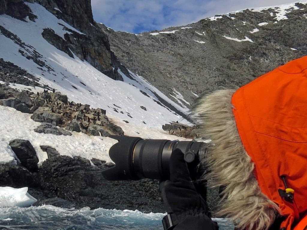 Last night’s adventurous sailing to Antarctic Sound in the northeast side of the Antarctic Peninsula gave us an understanding of the natural forces that dominate this place. We experienced the power of the winds that are characteristic of the Weddell Sea and we marveled at the gigantic tabular icebergs that break off the nearby ice shelves. The captain invited us to the bridge while he and his officers maneuvered National Geographic Orion with proficiency among the towering ice.