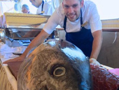 The day proceeded at a very relaxed pace, and when the time came for our wonderful buffet lunch on the lido deck, we were all stunned by a humongous fresh tuna fish that was the highlight, among many other delightful dishes! It was cut on the spot, and we had it either raw or grilled, and of course we loved it! Our day was also enriched by a “crash” lecture on photography given by our onboard expert Linda Burback, and an overview of the Greek history in the region presented by the two Greek cultural specialists Roula and Smaro.