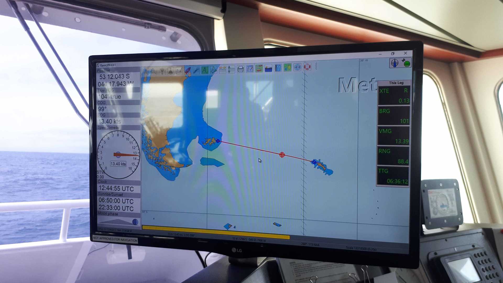 Until now, we have skirted the mercurial weather of the South Atlantic. Though the sun has been rare, we have been lucky with calm seas and easy access to some of the most exciting landing sights South Georgia and the Falklands have to offer. Today, as our trip nears its end, we had the opportunity to experience a small taste of the conditions that make this such a notorious region for seafarers and explorers. With sustained winds of up to 50 knots wrapping around Cape Horn, the ocean quickly began to churn. Our captain and bridge team found us shelter in the Beagle Channel where we spent the day appreciating the power of the ocean and the biodiversity of Tierra del Fuego. While onboard in the comfort of our new ship/home, National Geographic photographer Camille Seaman shared a collection of photographs she took throughout the last two weeks. Naturalists Madalena Pachaco and Bud Lenhausen shared stories of exploration and changing climates. Photo caption: The chart shows our way to protection from the storm in the Beagle Channel. Photo by Alex Krowiak