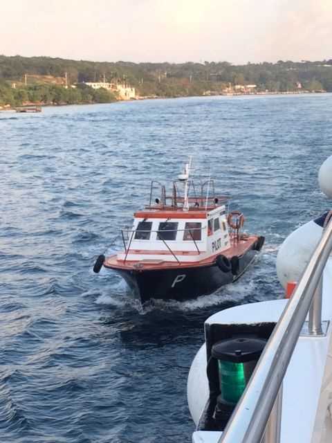 The Caribbean Sea is a sub-oceanic basin of the western Atlantic Ocean, lying between 9° to 22° N and 89° to 60° W. It is approximately 1,063,000 square miles in extent, bound to the south by the coasts of Venezuela, Colombia, and Panama, to the west by Costa Rica, Nicaragua, Honduras, Guatemala, Belize, and the Yucatán Peninsula of Mexico, to the north by the Greater Antilles islands of Cuba, Hispaniola, Jamaica, and Puerto Rico and to the east by the Lesser Antilles chain. Though sheltered, it can become tumultuous, so we were happy with these lovely conditions.