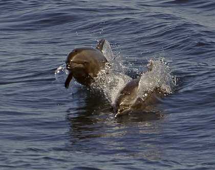 Dawn found us northwest of and nearing Isla del Carmen. Calm seas are the best for searching for marine mammals, and this was a day of glassy water with bands of wind-generated ripples extending as far as one’s gaze could see. Occasional bottlenose dolphins were in the distance but seemed uninterested in our passage. Later in the morning a few of these large dolphins approached the ship for bow riding, while in the distance others leaped high out of the water or rode within the waves of our wake.