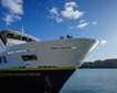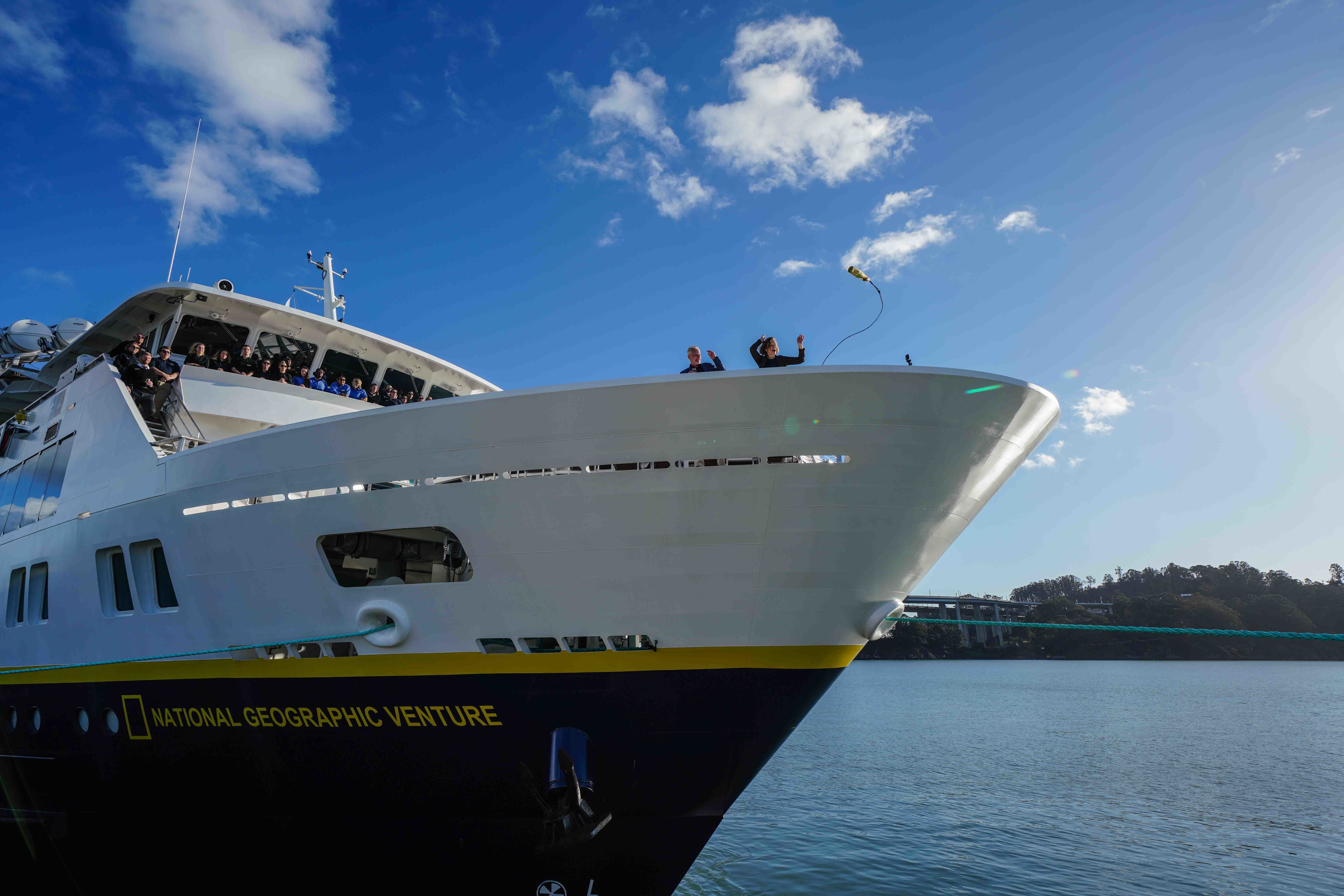 that looked like it had two chimneys. Guests streamed out on deck to witness