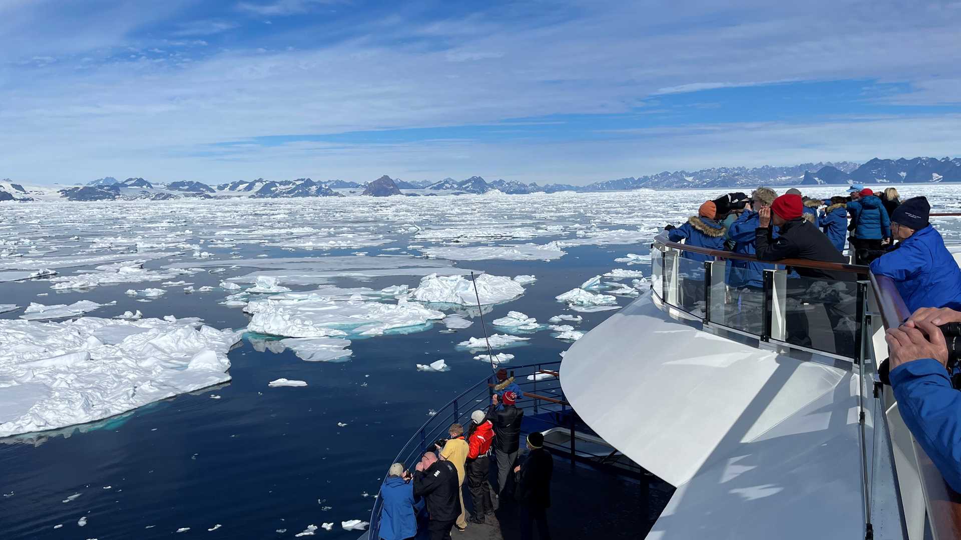 As an interlude in the morning, we continued our educational program with our National Geographic Global Perspective Speaker, the famous mountaineer and explorer Peter Hillary. Peter shared with us his inspiring presentation, entitled “7 summits and 3 poles,” about his adventures on high peaks and in icy waters. In a similar interlude in the afternoon, Mark Brazil gave his presentation called “Cool Birds of Cold Places.”