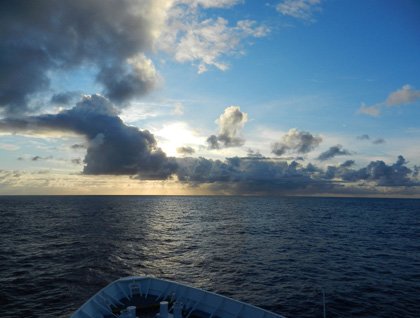 With the Pitcairn Group in our wake we have set out across the wide stretch of the Pacific that lies between Ducie Atoll and Easter Island. Once again the greatest ocean in the world surrounds us and we are the center of our own world, isolated and alone, yet never disconnected from all that lies over our horizons. There are so many ways to spend our time as we near the end of our voyage through remote southeastern Polynesia the day has raced by and some plans have had to be put off—maybe tomorrow. Talks from our Global Perspectives Guest Speakers, Paul Rose and Bob Brown, and from members of our natural history team and cultural experts, have helped us to wrap up the ideas we have explored on this journey and prepare for the final exciting landfall at Easter Island. The photo team has been busy helping us to edit and optimize the beautiful images we have made during the trip, with the help of a special guest photo expert (Tom Ritchie) who offered his unique perspective on How To Take Good Photographs! And, of course, Chef Lothar and his team have kept us well fed and much delighted with their usual fabulous array of comestibles. It has been a day for reading, writing, and reflection on recent events and new memories. Perhaps for thinking ahead to the next adventure. Looking out across the wide expanse blue water under blue skies that surrounds us, some of us have found our thoughts travelling into the past, thinking of the earlier voyagers who made this long crossing long ago. First came the Polynesian navigators in their double-hulled voyaging canoes, followed by the European explorers, years away from home in tiny wooded ships with only a vague idea of where in the world they might be. These journeys are nearly unimaginable from our perspective, at ease and in comfort on our state-of-the-art expedition vessel. But perhaps we can catch just a hint, just an echo of the feeling of being truly at sea, on the face of the great Pacific Ocean.