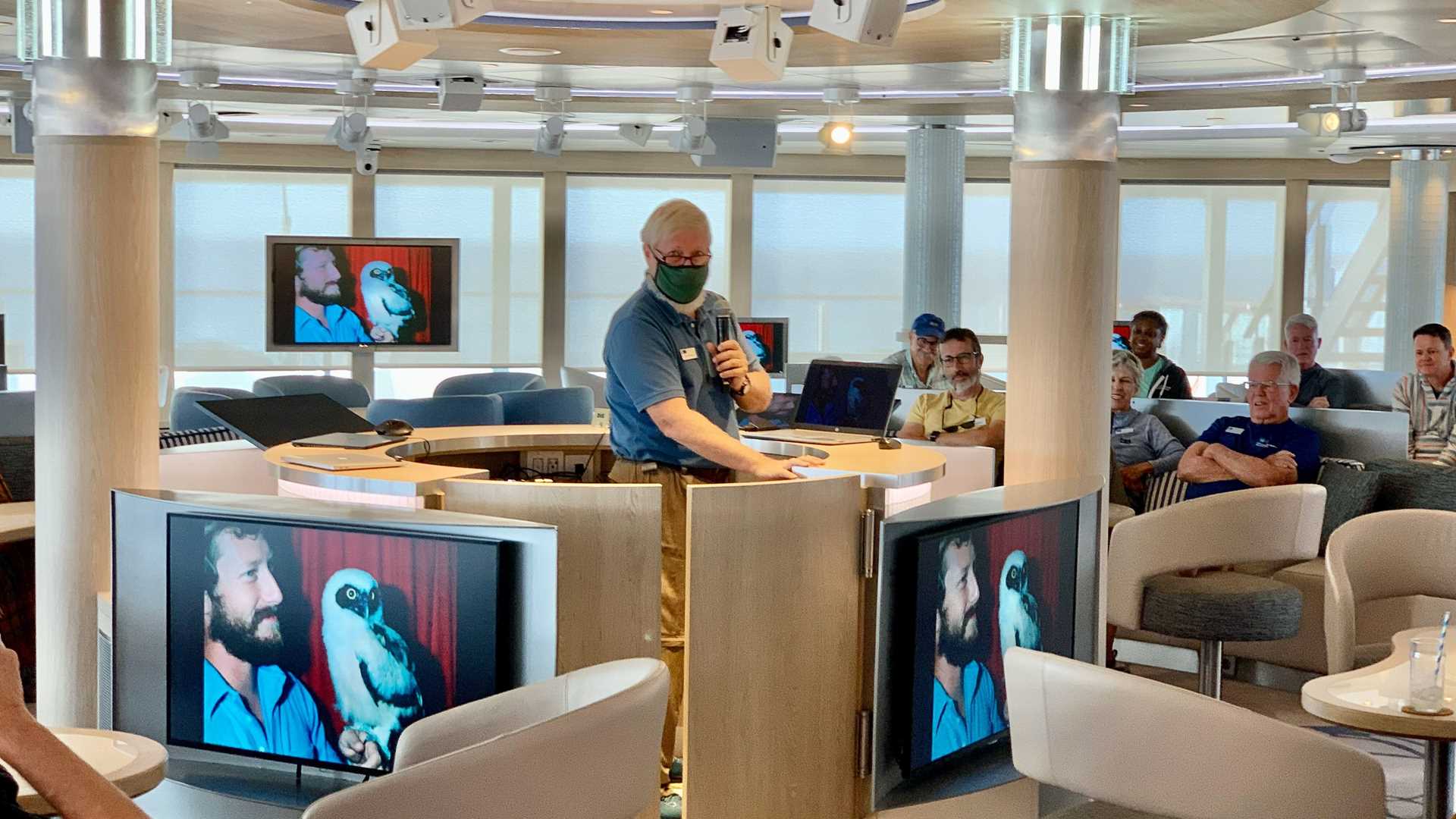 Today is the day that everyone dreads, the last sea day of the voyage as National Geographic Resolution powers her way towards the island of Rapanui. We experienced so many memories and powerful moments throughout this voyage. The early morning began with an art tour that highlighted the exhibits on the ship. Ably led by cultural specialist Jennifer Kingsley, guests were captivated by her interpretations of the art as she shared about the artists’ visions and ideas. National Geographic photographer Susan Seubert led a workshop on the workflow associated with digital photography. Afterwards, we began preparing for tonight’s slideshow by gathering the photos that will remind us of each day of this voyage. Mid-afternoon, expedition leader Alex Searle, an expert on Rapanui, began to prepare us for what awaits with a presentation about the island. Teatime was a special wine tasting event, and we ended the day with our Captain’s Farewell cocktail party. Captain Heidi Norling gave a heartfelt recap of the entire voyage, and we completed the day with an auction of some very special items. Kenneth Valdueza, a member of our deck team, illustrated a gorgeous chart of the region we have travelled. With fabulous, intricate pencil drawings, he brought the undersea world to life with representations of a blacktip reef shark, a spotted eagle ray, a sea turtle, and various creatures from the reef. Guests were blown away by his artwork, and two of our guests made a generous donation to the crew fund for the opportunity to take this beautiful artwork home with them. Cheers, everyone.