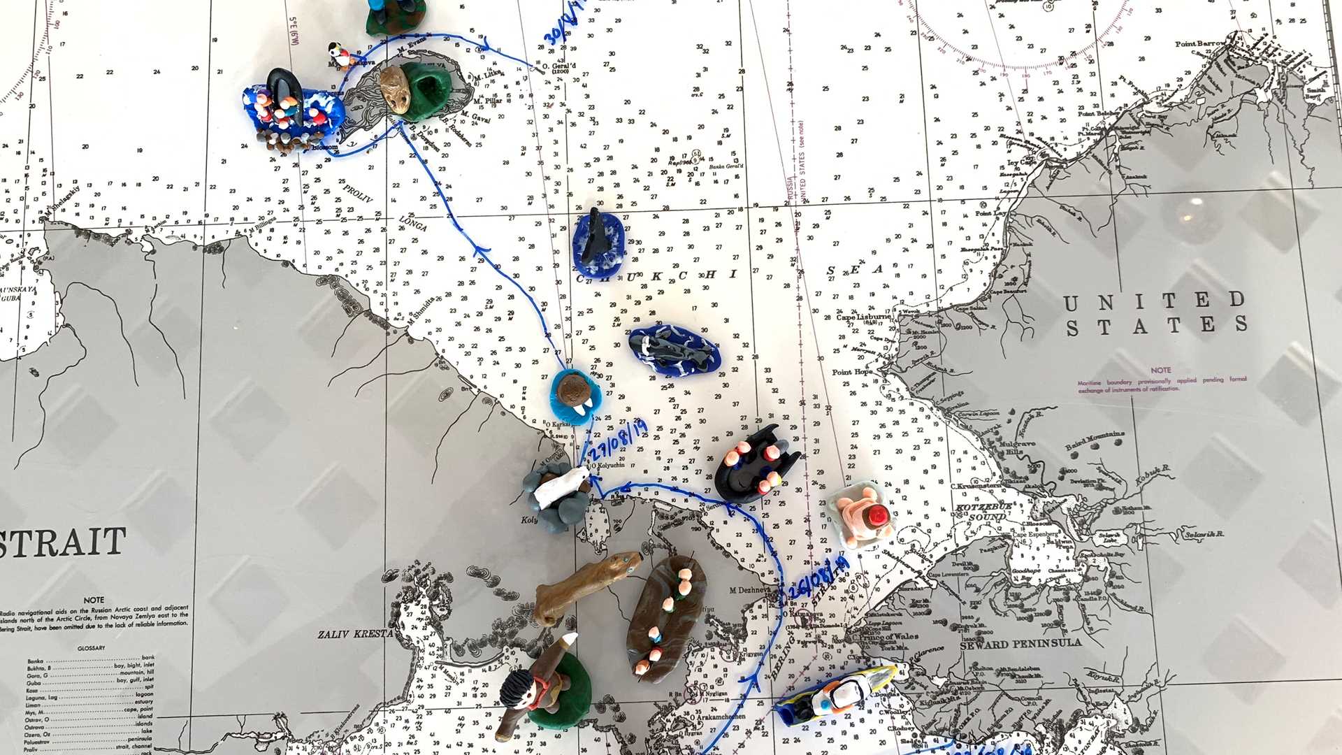 This is the last day of our expedition and a perfect time to remember all of the stops we’ve made along the way. One of our staff members, Peter Webster, has been memorializing through sculpture each activity on the chart in our Observation Lounge.