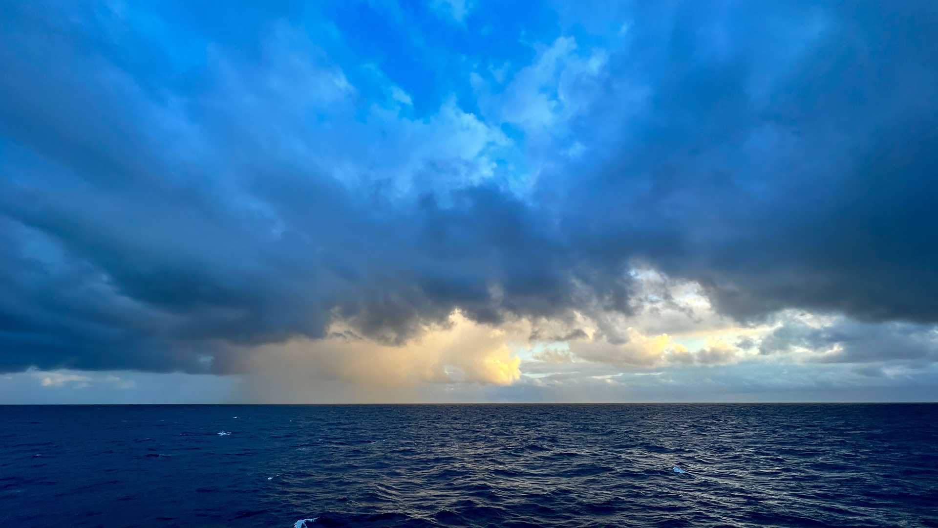 After our fantastic afternoon snorkel yesterday at Raroia, we said goodbye to the atolls of the Tuamotus. We spent all day sailing north to the Marquesas Islands. A stunning sunrise with scattered showers began the day, and a fiery sunset ended it. The time between was filled with deep blue ocean and a few exciting wildlife sightings. Mostly, we spent today looking ahead to tomorrow, when we will arrive at the magical Marquesas.