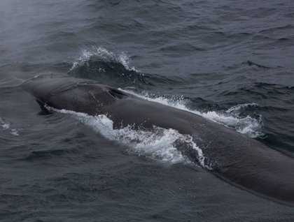We had hoped to find some whales of course, but to have a group of 25-30 fin whales feeding so close to the ship, some of them almost bow-riding and moving around as gently as a small dolphin was well beyond our expectations! Not every day you get ‘sprayed’ by a whale but… is it good or bad luck? The staff on the bow seemed to disagree on that whaling tradition, but we were definitely all very happy to have enjoyed such a close encounter. Fin whales are the second largest animal to have ever lived in this planet, second only to the blue whale. They can weight up to 120 tons and the females being 5-10% longer than males can measure up to 27 meters. The group we observed was feeding on massive concentrations of krill so much that in places turned the ocean orange! An individual whale can consume up to two tons of prey per day. Pintados, blue and black-bellied petrels and even some black-browed albatross benefited from the whales bringing the krill to the surface and also made a good meal out of the feast. Being able to travel extremely fast for such a large animal, fin whales were really never hunted to the extent that other slower swimming species were; hence their population numbers are still fairly good in the Southern Oceans although still threatened.