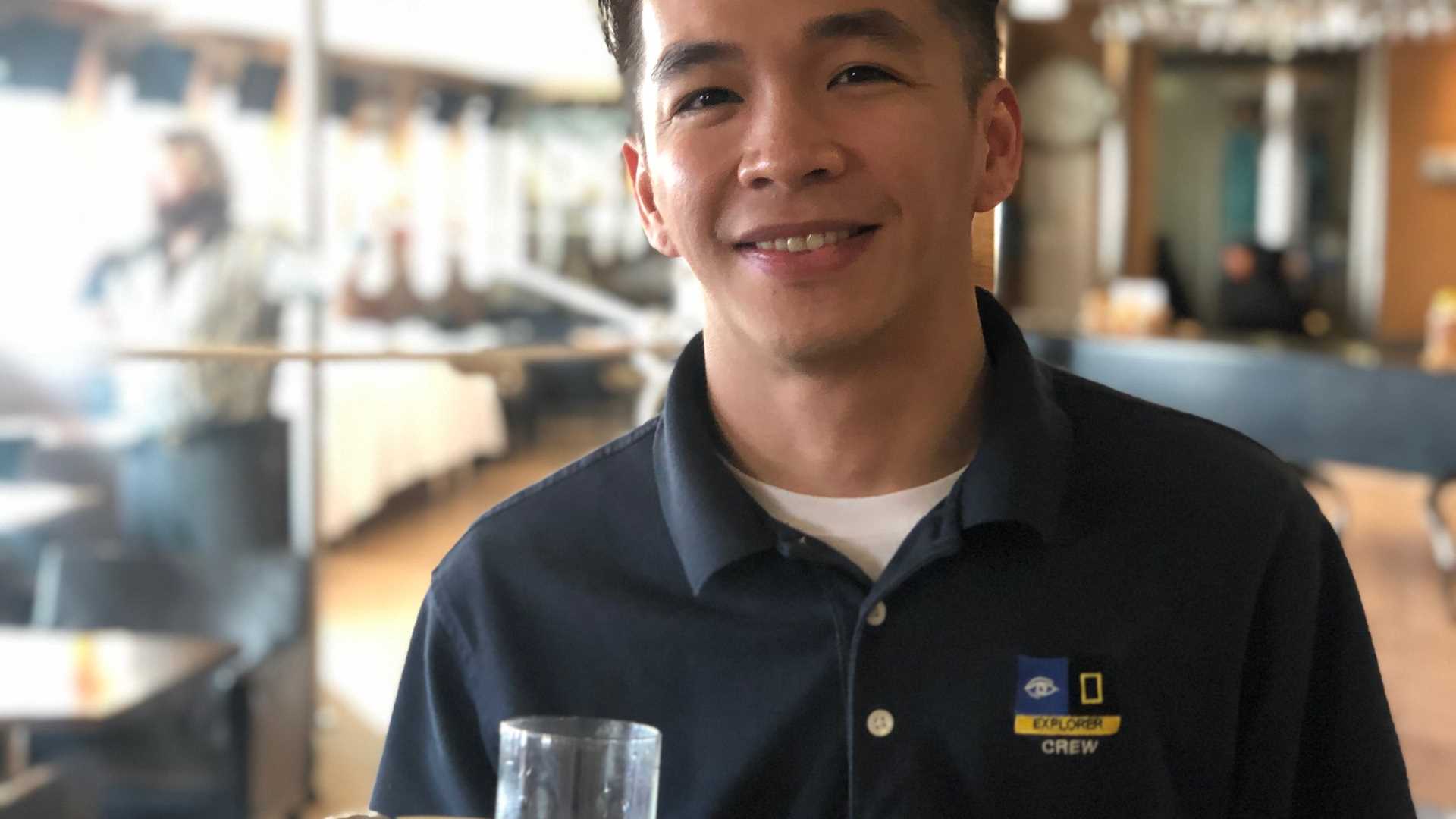 Then we were treated to a wonderful lunch with lovely salads and such. Even on the roughest of days, when some people are finding a moment to rest, the National Geographic Explorer crew are still working hard. Sonny, who works in the dining room, zipped between tables happily smiling and chatting to people, depositing drinks, and taking orders. Around the corner, Riza was on reception, answering questions, directing queries and sorting out any problems that people may have had.