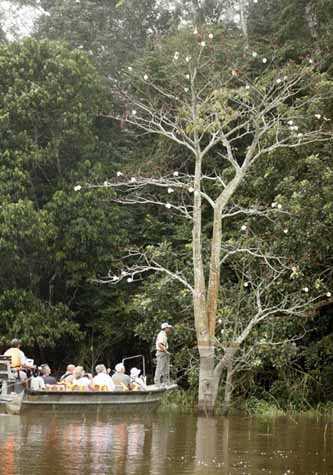 Our skiff ride in and out Zapote River was full of encounters with wildlife, as we observed hundreds of birds flying alongside the skiff, including Jabiru and hundreds of great egrets.