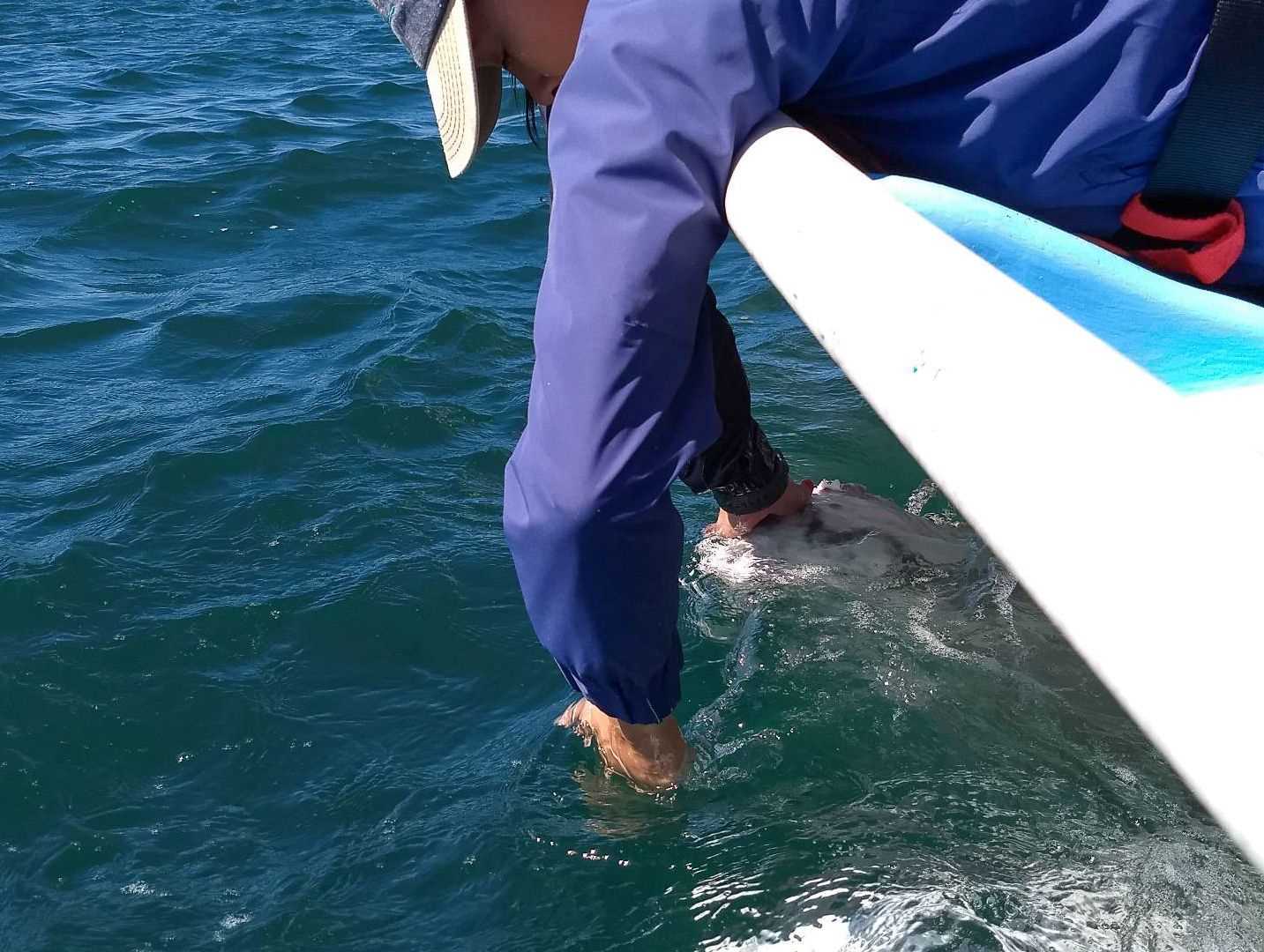 After spreading out into four boats to carefully observe from a distance, we encountered several curious whales. We all saw far more than we’d anticipated, including some sightings of a rare albino whale. One boat was tail-splashed by an adult passing by. Another boat was approached by a gray whale that they petted and scratched, sharing an experience that not one of expeditioners will ever forget. By the end of our visit, we could all gratefully say that we had each seen at least 30 gray whales in only three hours and can’t wait to observe more.