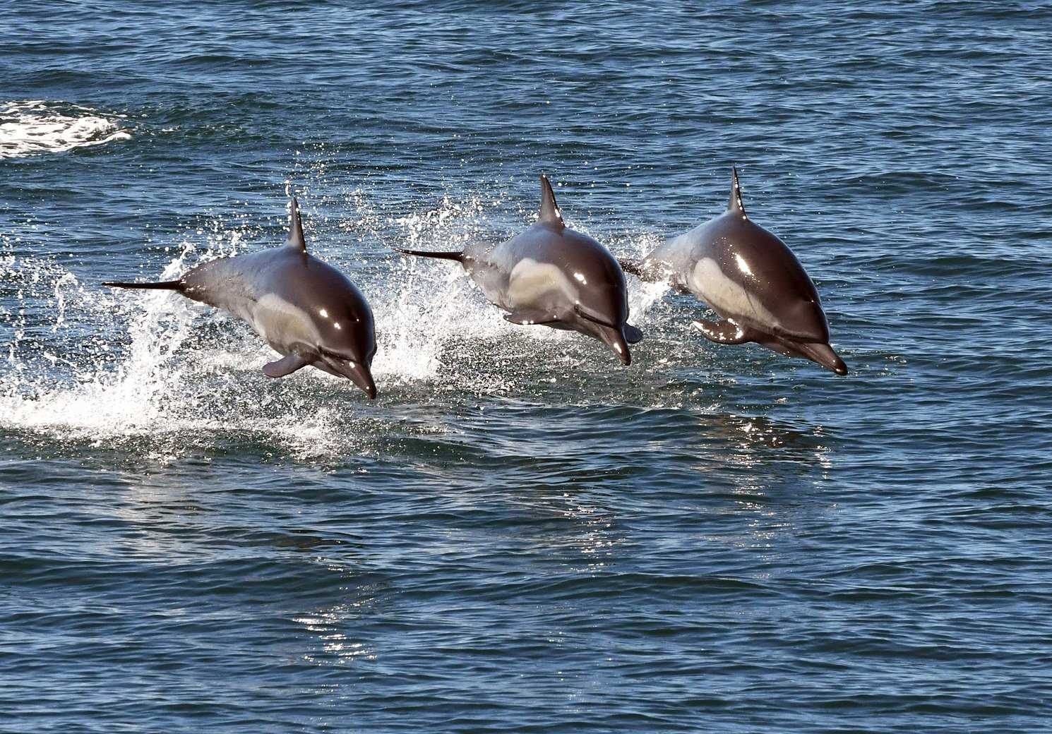 This was a day one could only dream about. A couple of hundred long-beaked common dolphins surrounded the ship and stirred the glassy, calm seas. Later we found two very mellow whale sharks in a nearby cove. They acted like our inflatables were some kind of flotsam to be ignored, much to our thrilled delight. We snorkeled in the clear water of Bahía Concepción before heading south. Numerous seabirds and long lines of pelicans escorted us south into more dolphins and a Bryde’s whale. The last sunlight filled the sea with golden light punctuated with jumping dolphins. Some days you never want to have end.