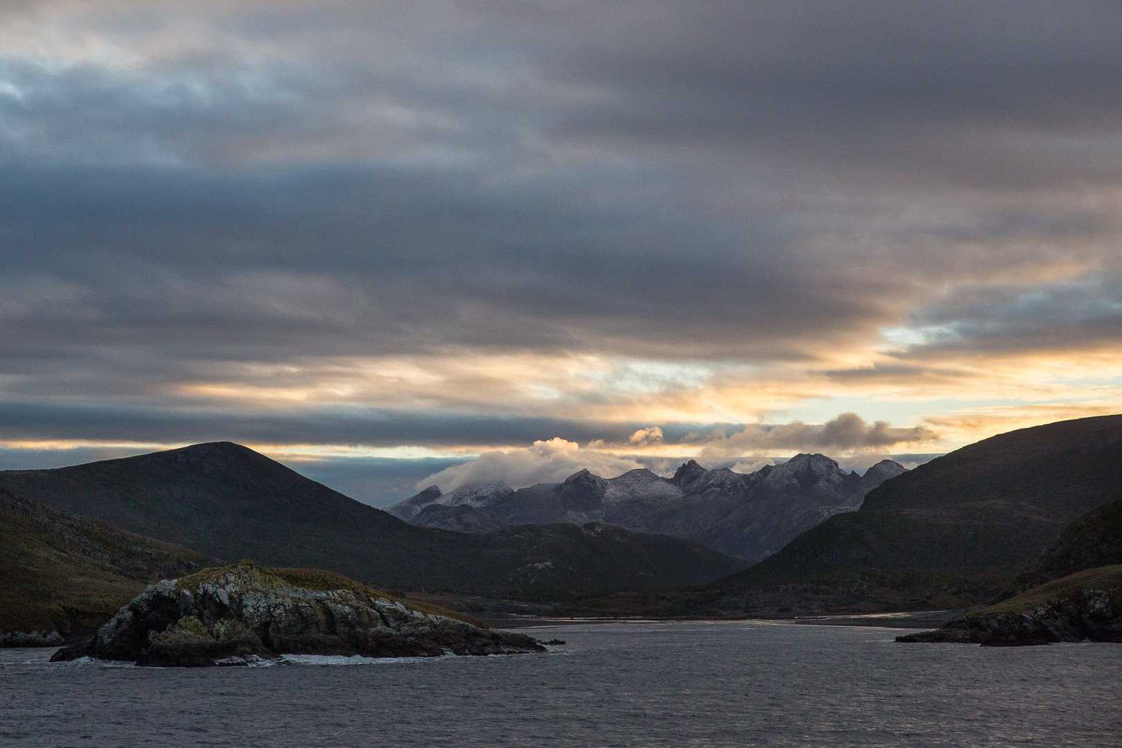 A fierce rainstorm followed us to our second anchorage in Bahía Canepa. This is a sweeping fjord with massive granite walls and several notable waterfalls. In our fleet of zodiacs we followed close to the coastline and tested our raingear for leaks. Interpretation on the geology, bird life, and marine mammals were highlights of these cruises, as Staten Island’s remote nature makes it a unique ecosystem and refuge for many seabirds. Many cruisers were greeted by incredible numbers of South American sea lions investigating the Zodiacs as they passed by. All came home thoroughly drenched and smiling with a great deal of enthusiasm and kinship to these lands.