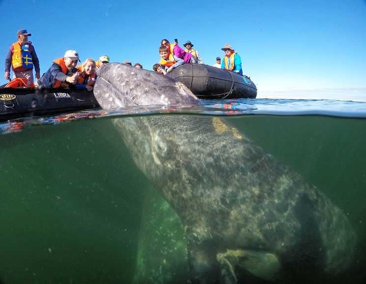 Today was our second day in Baja California, and what an incredible day it was! We had amazing views of the gray whales in the morning, including some that approached our boats and became very friendly with us. In the afternoon we spent time with a playful pod of dolphins and explored the sunny beaches and searched for more whales. When we boarded the National Geographic Sea Lion after a long day on the water, we were serenaded by live music and enjoyed a delicious Mexican meal.