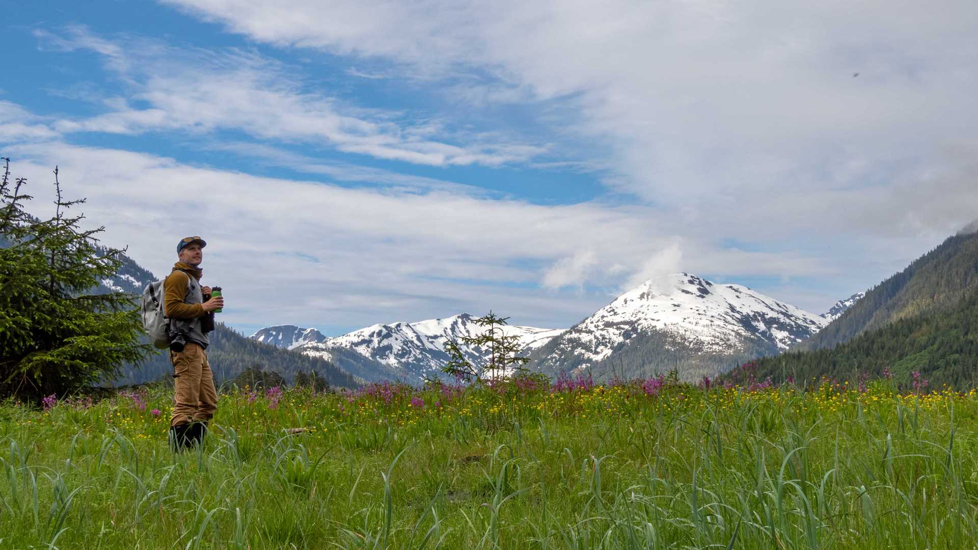 National Geographic Quest arose amidst light clouds within the protected waters of Ushk Bay. This area is known for a salmon stream and yields plenty of opportunity for kayaking and exploring the vast meadows of its inner waterways. On this day’s occasion, guests were able to hike and paddle their way along the coast of Ushk Bay and witness firsthand the life cycle of Pacific salmon making their way upstream. As we transited through Peril Strait, we were lucky to see humpback whales. These immense mammals were “lunge feeding” very near our ship. Being able to witness this event was unique for guests and staff. Lunge feeding is process through which individual whales push their gaping mouths through the surface and collect any fish or planktonic invertebrates in the process. Witnessing this behavior was truly a remarkable experience for all. We will cherish this moment for a lifetime.