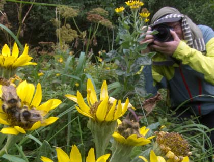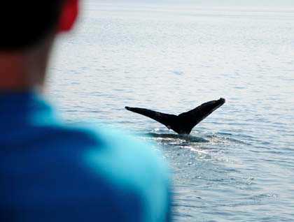 As the sun burned the clouds away we cruised northward along the eastern edge of the island and soon met up with Dr. Andy Szabo, director of the Alaska Whale Foundation. Dr. Szabo’s knowledge of the foraging behavior of Southeast Alaska’s humpback whales is unsurpassed and his presentation style is delightfully entertaining. Perhaps the whales enjoyed it too, as right after Andy departed, five humpback whales were in our vicinity. The sound of whale breath and close views of these resting cetaceans brought the morning to a most satisfying end.