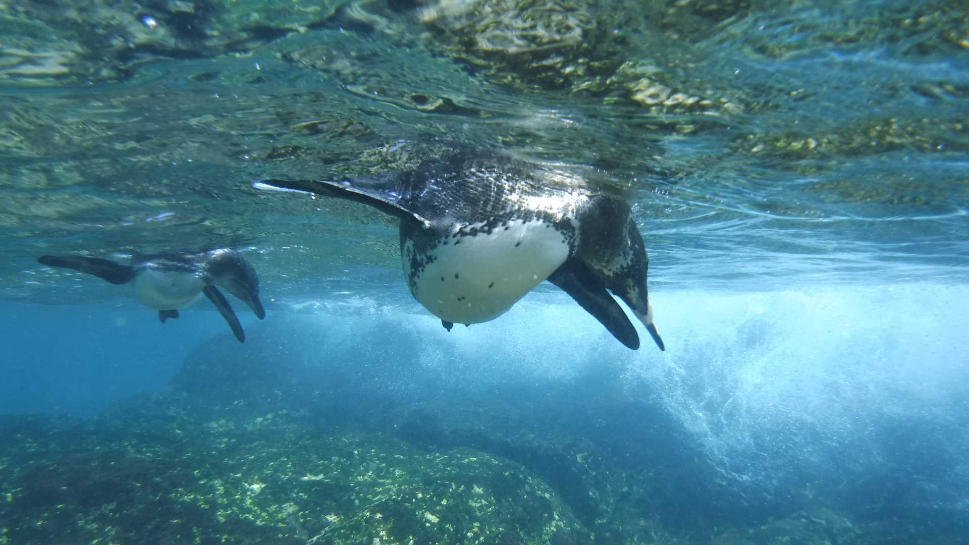 We returned to the National Georgraphic Endeavour II for breakfast, and we went right back out again. This time we went to a small golden colored beach; where we snorkeled with penguins, rays, and many different species of fish. We also took our glass-bottom boat for a ride along the coast of this nice calm bay, where we could experience the underwater life without getting wet.