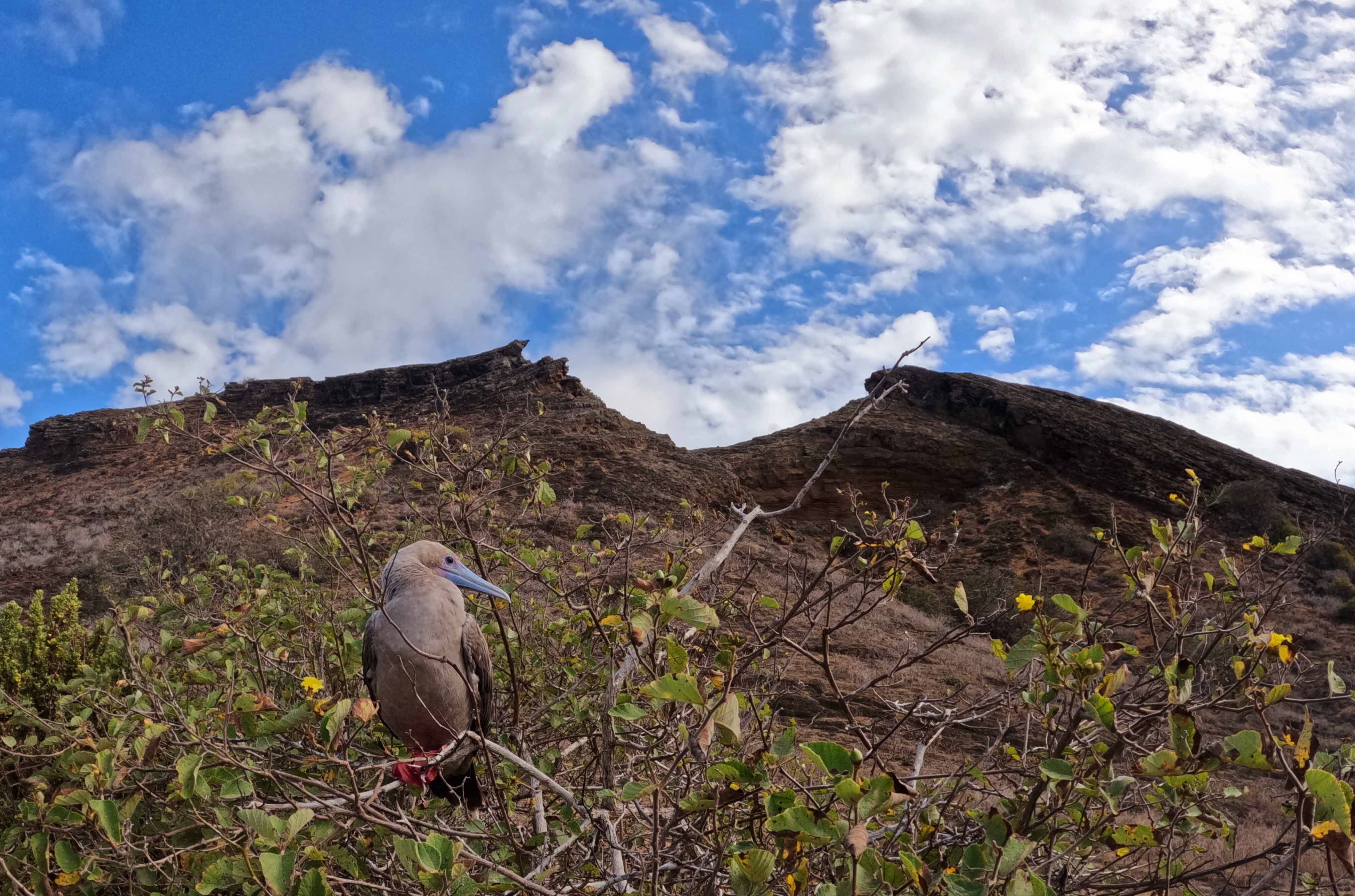 We woke up to super calm waters off the northern coastline of Floreana Island. Perfect conditions for a bit of kayaking among the offshore islets near Post Office Bay! Brown pelicans, egrets, green sea turtles, and red, black, and white mangroves…a peaceful environment for an hour or so before breakfast. Some guests went straight to the beach to walk a few yards through saltbushes and found themselves facing the famous “barrel” of Post Office Bay. It’s been over a century since the barrel was first placed here for use by whalers to exchange correspondence and carry back letters of business, or perhaps letters to loved ones. Today, postcards fill the barrel, but the turnover is fast. Each day, some of the postcards are taken for delivery while others are left behind in hopes that someone will continue the tradition and hand-deliver them in the weeks to come. Between breakfast and lunch, we played in or on the water around Champion Islet, just to the northeast of Floreana Island. We didn’t make a landing but explored by Zodiac, including a birdwatching circumnavigation followed by deep-water snorkeling in incredible waters with parrotfish, angelfish, pufferfish, damselfish…all kinds of fish! Sea lions buzzed by, desperate to draw attention and get a reaction out of us, which they did. Squeals and shrieks were heard. After an instructional briefing on iPhone photography and a presentation on Charles Darwin in the afternoon, we went ashore on the main island of Floreana. There has been quite a drought this year and not much rain the previous year either. The land was dry, the vegetation was brittle, and dead leaves were everywhere. But all that is fine for the native and endemic species; after all, they’ve been through this before, over the millennia, and survived. The stress is on the introduced species who depend on higher amounts of freshwater for survival. While their defenses are down and populations are stressed, now is the time to really push for programs to eradicate introduced species. Floreana Island is ready for restoration. The National Park and collaborating NGOs are preparing Floreana to receive native species that were once thought doomed for extinction. Giant tortoises, Floreana mockingbirds, and racer snakes may yet survive and prosper with the help of these organizations. We spent the afternoon following an easy trail from a dark-colored beach of mineral origin and over the isthmus to a white, organic beach where green sea turtles were riding the breakers offshore. The turtles are not quite ready to come ashore and lay eggs, as temperatures are still too low for another month or so. But a great blue heron and frigatebird were checking out the scene, just in case someone tried for an early nesting. It will be a couple months before hatchlings try to race to the ocean in the dark of night. We returned to our base of operations as the sun set low on the horizon. National Geographic Islander II was waiting for us with hot water and the comforts of home.
