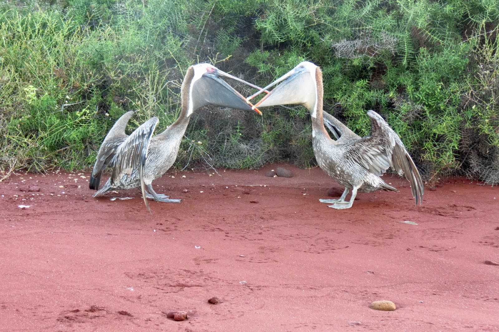 Bartolome Island and its magnificent scenery this morning was an incredible visit for those who were up early. The ensuing snorkel and beach visit introduced the guests to a several white-tipped reef sharks, three species of ray and a plethora of fish. Then the penguins arrive…Another great snorkel in the afternoon in Rabida brought us the riches of the baitfish. They were in huge numbers and blue-footed boobies were diving for them. Kayakers saw the first turtles, which were enthralling. However, it was the sunset-walk that won the day with as huge feeding frenzy was underway with tuna and sharks chasing the baitfish and frigates, pelicans and boobies fighting for the remains.