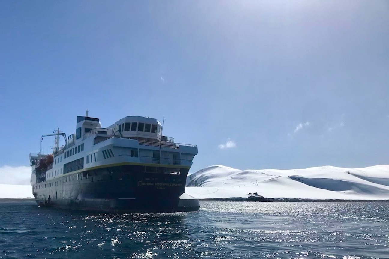 We woke up early in the morning as National Geographic Islander navigated along the northern part of Isabela Island. Slowly the sun appeared above the clouds surrounding Volcano Wolf. We spotted our first birds as Galapagos fur seals returned to shore from their night hunt. We enjoyed a great breakfast. Afterward, expedition leader Vanessa called everyone to the bow to celebrate as we crossed the equator. Our guests happily crossed the line. Approaching Punta Vicente Roca, the visitor site, we spotted Galapagos sea lions and a good number of ocean sunfish. The first activity of the day took place as we dropped anchor at Punta Vicente Roca. This is a spectacular geological site. The combination of the former volcano’s tall cliffs and the tuff cones formed later adds an amazing contrast to this unique visitor site. Our best tools for exploration, our Zodiacs, were lowered down, and off we went to explore the coast. We observed Nazca boobies and blue-footed boobies resting on the small ledges of the tuff cones. Galapagos sea lions swam close to our Zodiac, and Galapagos penguins rested on a broken piece of the tuff cone after feeding. What a wonderful sight! In a calm area, we found a good number of Pacific green sea turtles. The morning’s activities ended with snorkeling. Pacific green sea turtles, plenty of colorful fish, Galapagos marine iguanas and flightless cormorants surrounded us. It was a phenomenal experience! The ship was repositioned toward Fernandina Island. The youngest island of the archipelago, Fernandina is a highlight of our expedition. This island shows our guests the beginning of life. We observed animals thriving in the hostile environment. Pioneer plants like lava cacti grow on the lava fields, breaking down rocks little by little to create soil for the next generation of plants. Punta Espinoza is known for its huge colony of Galapagos marine iguanas. It is hard to distinguish the iguanas from rocks since they are so dark in color. On the other hand, colorful Sally Lightfoot crabs added contrast to the young, dark lava fields. We ended our walk as the sun was setting, returning to the ship with great memories. It was a fantastic day in the western part of the archipelago.