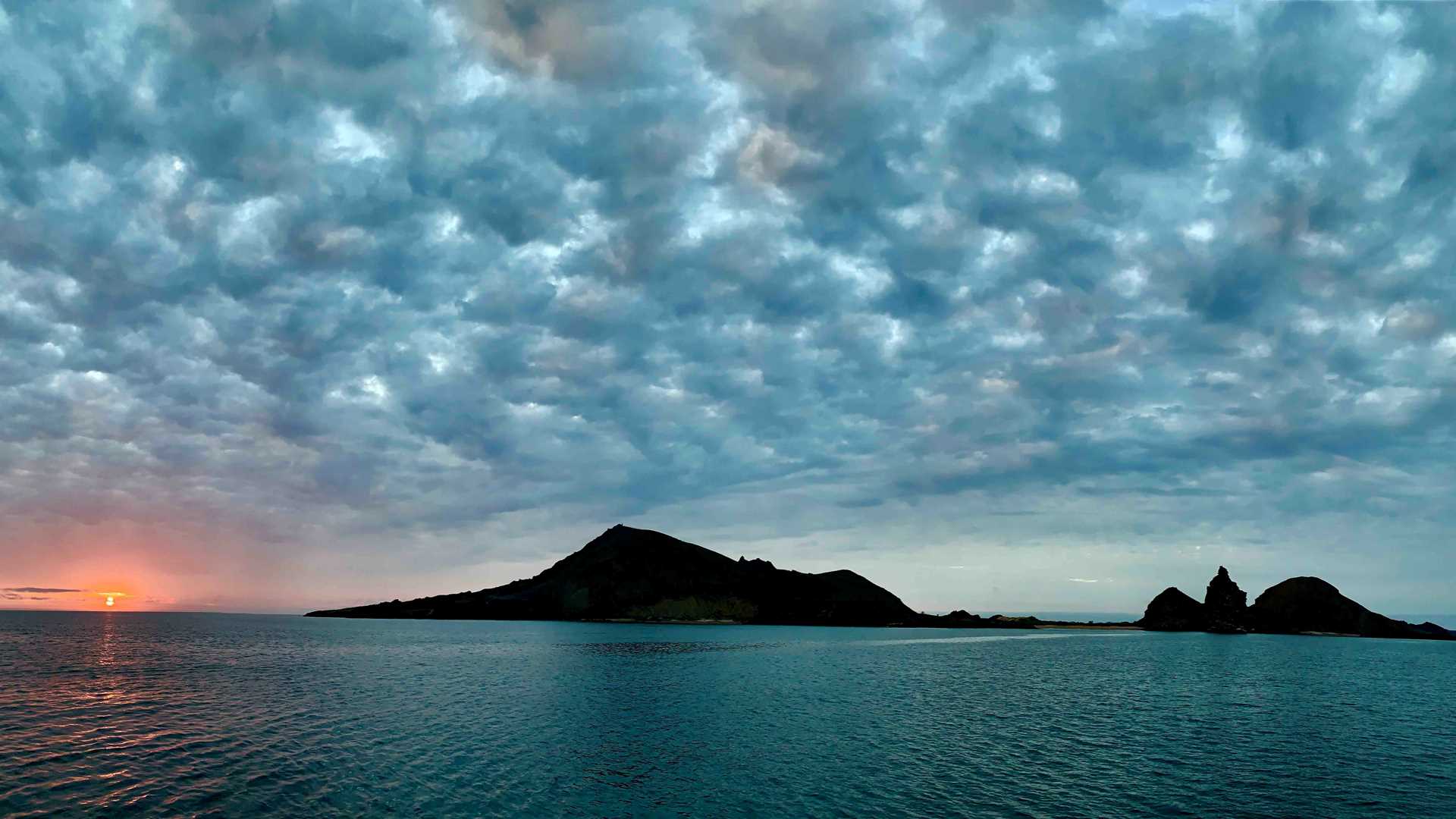On National Geographic Endeavour II today, we explored Bartolome, home of a small colony of Galapagos penguins. Bartolome is one of the youngest islands, and it is located next to Santiago Island in the central part of the archipelago. After an amazing sunrise, we went ashore for a walk, and we were transported back to a time when the land was newly formed. We began our day by hiking to the top of a tuff cone known as the islet of Bartolome, named after the First Officer of The Beagle . Walking on this young island allowed us to understand the formation and volcanism of the Galapagos Islands. The rocks are a great way to understand the area and its geology. We spotted a few lava lizards and painted locusts, some of the very few animals on this island. As we reached the top, we had a great view. Our guests enjoyed the magnificence of Pinnacle Rock. After we visited one of the most iconic geological formations of the Galapagos, our breakfast was enhanced by dramatic views of the impressive volcanic landscape. We visited the beach near Pinnacle Rock, where we enjoyed how the sun made the sand sparkle due to a concentration of silica. Later, we went snorkeling along the channel between Santiago and Bartolome Islands. Many of our guests spotted whitetip reef sharks and very colorful parrotfish. The landscape was beautiful with lots of sea stars. We enjoyed the chance to be surrounded by Galapagos penguins and feel accepted as part of this environment. After a delicious Mexican lunch, we had lectures on the photography of reptiles and Darwin. Afterwards, we went to Chinese Hat Islet to snorkel from the Zodiacs. The area is home to a small colony of Galapagos penguins. In a sandy-bottomed, sheltered channel, our guests enjoyed swimming with whitetip reef sharks, rays, and many fish. It was a nice and sunny afternoon. After snorkeling, we had the chance to explore the unique, small volcano that formed an island in front of Santiago on a sunset Zodiac ride. After a spectacular day full of activities in the field, we returned on board. Every day in the Galapagos is an opportunity to reconnect with the beauty of nature through unbelievable encounters!