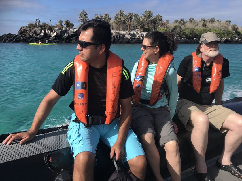 Today, National Geographic Endeavour II visited Cerro Dragon, located on the north part of Santa Cruz Island. We found one of the largest colonies of land iguanas. During our hike, we spotted the iguanas all around the trail. Some basked on the vegetation, and others were active. We saw the zigzag head movement they use to protect their territory and impress females. An Ecuadorian buffet lunch was set up in the dining room. We started with the traditional ceviche and ended with tres leches for dessert! We enjoyed snorkeling and Zodiac rides. We observed wildlife all over the place, including spotted eagle rays, sharks, blue-footed boobies, great blue herons, marine iguanas, and hundreds of other animals. They all reminded us why the Galapagos is so special.