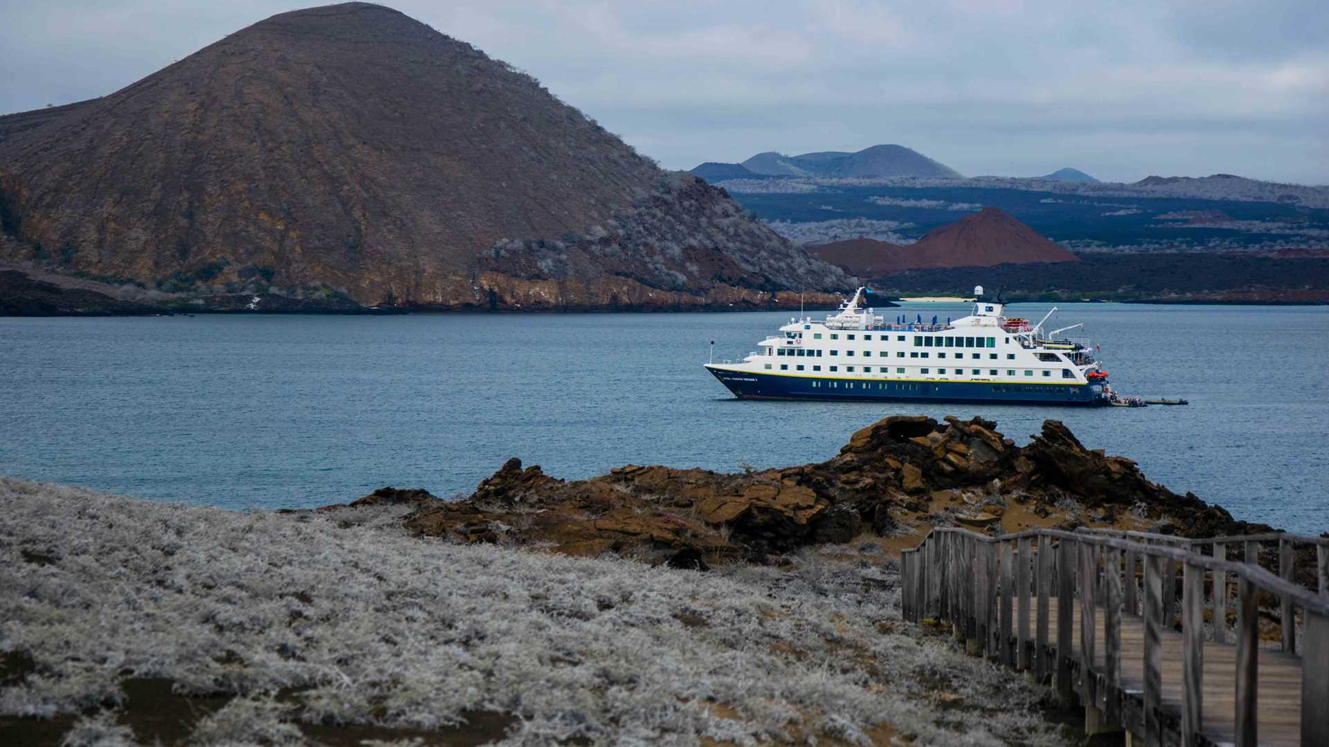 On National Geographic Endeavour II today, we explored Bartolome, home of a small colony of Galapagos penguins. Bartolome is one of the youngest islands, and it is located next to Santiago Island in the central part of the archipelago. After an amazing sunrise, we went ashore for a walk, and we were transported back to a time when the land was newly formed. We began our day by hiking to the top of a tuff cone known as the islet of Bartolome, named after the First Officer of The Beagle . Walking on this young island allowed us to understand the formation and volcanism of the Galapagos Islands. The rocks are a great way to understand the area and its geology. We spotted a few lava lizards and painted locusts, some of the very few animals on this island. As we reached the top, we had a great view. Our guests enjoyed the magnificence of Pinnacle Rock. After we visited one of the most iconic geological formations of the Galapagos, our breakfast was enhanced by dramatic views of the impressive volcanic landscape. We visited the beach near Pinnacle Rock, where we enjoyed how the sun made the sand sparkle due to a concentration of silica. Later, we went snorkeling along the channel between Santiago and Bartolome Islands. Many of our guests spotted whitetip reef sharks and very colorful parrotfish. The landscape was beautiful with lots of sea stars. We enjoyed the chance to be surrounded by Galapagos penguins and feel accepted as part of this environment. After a delicious Mexican lunch, we had lectures on the photography of reptiles and Darwin. Afterwards, we went to Chinese Hat Islet to snorkel from the Zodiacs. The area is home to a small colony of Galapagos penguins. In a sandy-bottomed, sheltered channel, our guests enjoyed swimming with whitetip reef sharks, rays, and many fish. It was a nice and sunny afternoon. After snorkeling, we had the chance to explore the unique, small volcano that formed an island in front of Santiago on a sunset Zodiac ride. After a spectacular day full of activities in the field, we returned on board. Every day in the Galapagos is an opportunity to reconnect with the beauty of nature through unbelievable encounters!