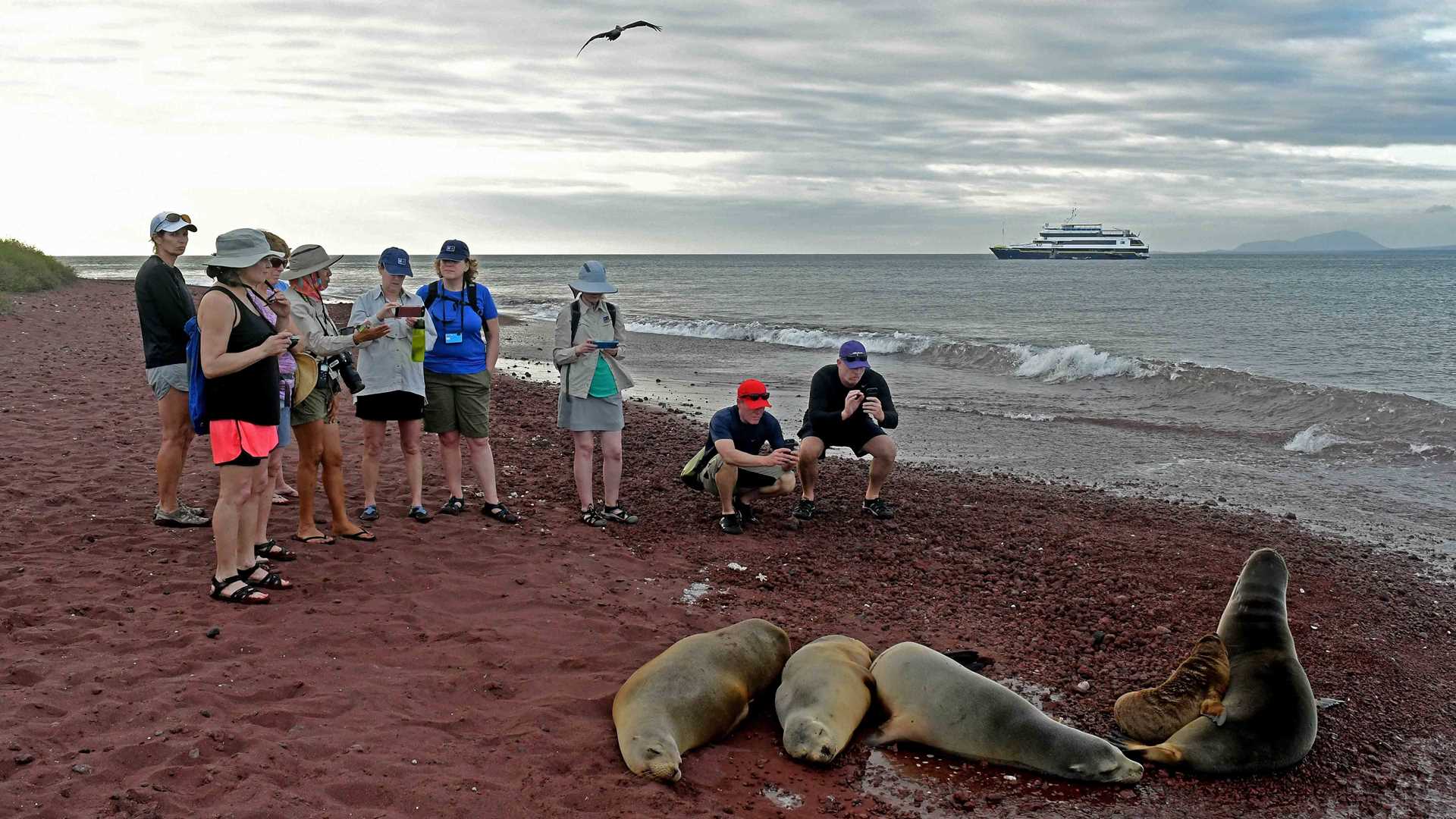 Later we planned a short walk along the red beach of Rábida to experience the life of the sea lion. It is a great experience to sit on the beach and observe how these aquatic mammals behave. The beach master patrols its territory and guards the babies and juvenile sea lions, while the females rest on the beach after days of being at sea getting food to survive and to produce rich, nutritious milk to feed their pups. The interaction is phenomenal, just to hear all the sounds they make to communicate with each other.
