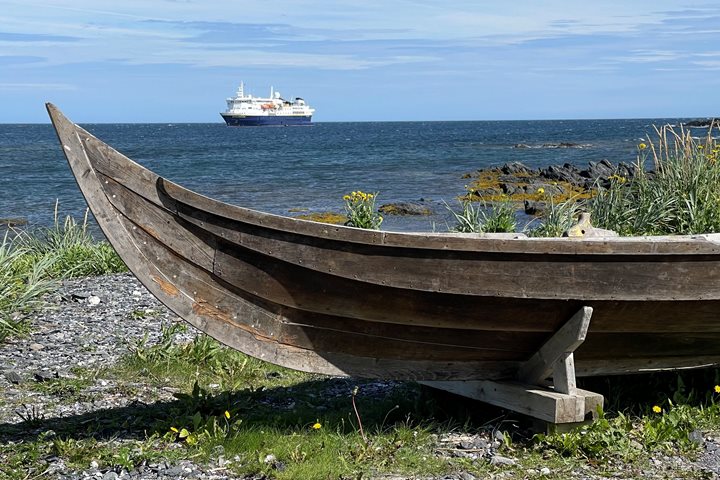 After we landed, we wandered among the cute wooden buildings embedded in the carpet of fresh grass and wildflowers. We escaped the slightly damp air to get a cup of hot coffee, some fishcakes, and cheesecake with wild berries. Then we enjoyed live Labrador and Newfoundland music in the cozy loft that was filled with warm smells and the crackling sound of a fireplace. Then it was time to return to our beloved ship for lunch.