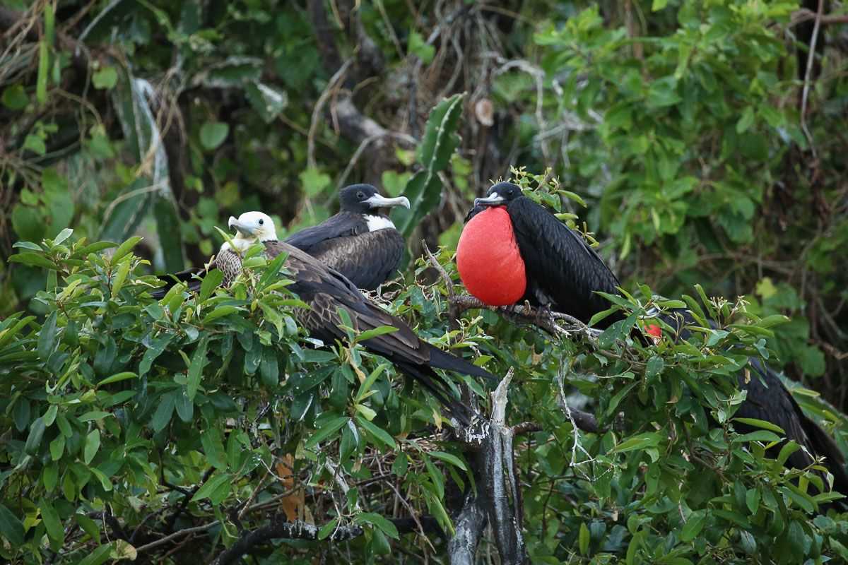 Today National Geographic Quest arrived at the Bay of Panama and we explored the rockeries that sea birds uses as nesting sites, which are becoming one of the most important areas in the country for these species. We got to see some of the local sea birds species in our Zodiacs in what was a fine cruise around this formations of rocks. Blue-footed boobies were one of the highlights of the morning, showing the extraordinary features of their blue feet as an very curious aspect of their natural history. Brown pelicans were observed as well making nests from dry twits and branches. Brown boobies and magnificent frigates birds also were seen in numerous groups.