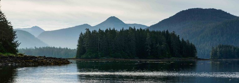 An “expedition” morning is what we had intended for today and that is exactly what we experienced. Sailing into the Bay of Pillars off Kuiu Island just after dawn we were met by dozens of sea otters scattered about on the water's surface in their typical laid back posture. This bay so aptly named because of the many steep walled small islands within it that at low tide appear like pillars rising from the sea and topped with forests.