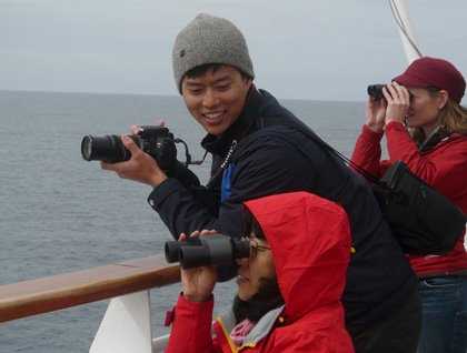It is midsummer night’s eve. We are dreaming of the penguins and icebergs and adventures in Antarctica that lie ahead. We left our safe harbor of Ushuaia, Argentina and waved goodbye to solid ground. We watched it fade slowly into the mist that shrouds Tierra del Fuego. All of our preparations have lead to this moment, the moment of letting go of all of our tasks and logistics. Now we are headed to the white world of the Antarctic. We are headed into the longest day of light of this austral summer. The black and white birds of this part of the world flew in swaying circles around our ship as we left: wandering albatross, black-browed albatross, pintado petrels, and giant petrels, to name a few.