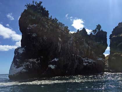 We landed on a small sandy beach and then divided into different levels of walking. Long hikers followed a narrow trail above the shoreline. Other hikers ventured along the same trail but for a shorter distance. A few decided to explore the area on their own either just inland at the edge of the forest or along the shores. A raging small stream kept most people from crossing to the other side of the area. We were surprised by a visit from a Chilean Coast Guard patrol boat and then an official looking helicopter that landed in the grassy area across the stream. Lots of pictures were taken by our guests as well as those in the helicopter and on the boat. Another group ventured down the coast to some mounds and shell piles, probably remains of some ancient fishing inhabitants. Periodic spots of sunshine made for a very pleasant afternoon.