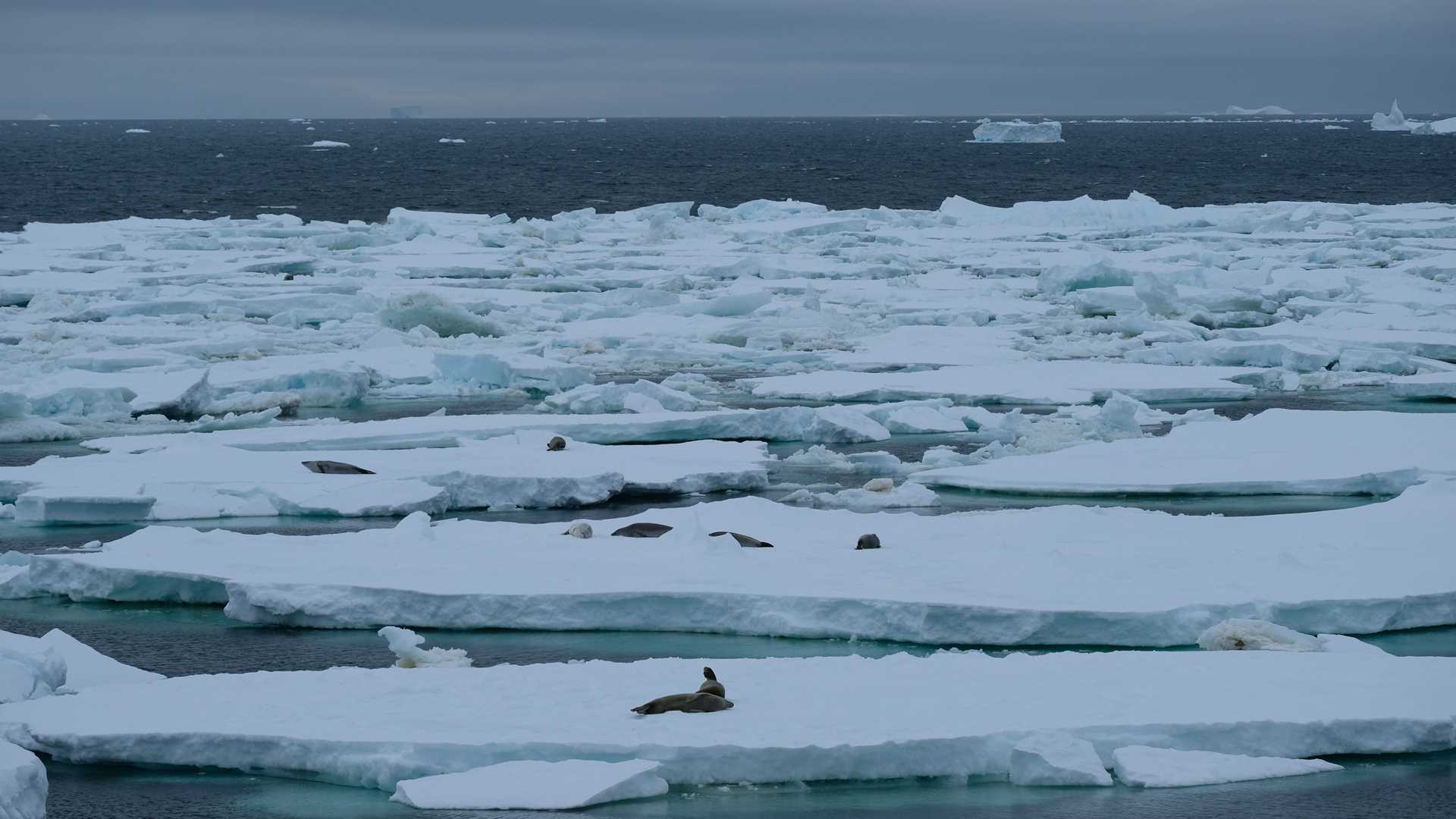 After leaving the Stange Ice Shelf and cruising up Carroll Inlet during the wee hours of the morning, we continued heading northward all day. As we made our way through open seas and moderate northerly winds in the morning, we had time for a couple of presentations in the Ice Lounge. We discussed the famous “Race to the Pole” between Amundsen and Scott, and the wonderful adaptations of the marine mammals we have observed.