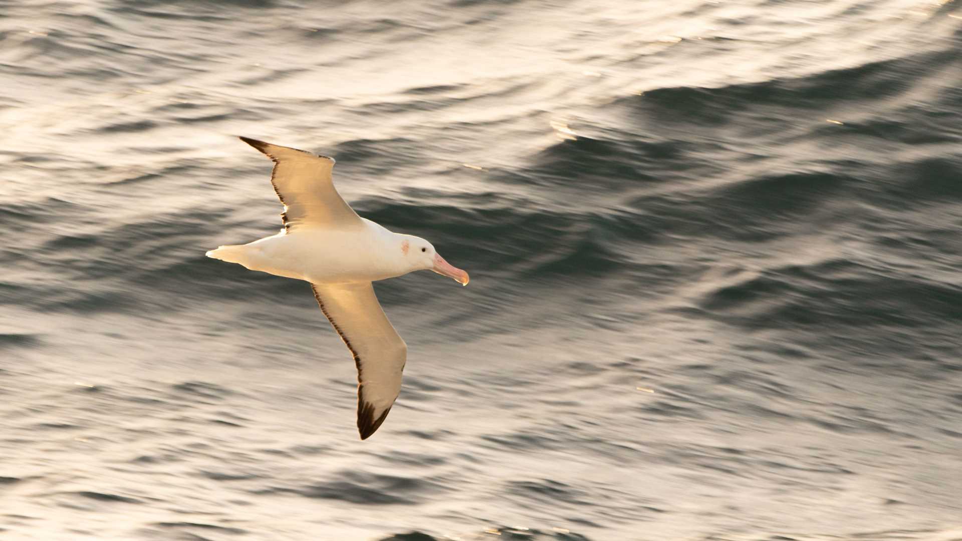 Almost home. Land is in sight as we complete our crossing of the Drake Passage and draw within view of Cape Horn. As sunrise begins to illuminate the clouds, we see the blinking light of the Cabo de Hornos lighthouse. Expedition leader Lucho tells us about the poignant albatross sculpture dedicated to lost mariners and reads us the associated poem in Spanish and English. We are sailing in sheltered waters now, and the sea has reached the balmy temperature of more than 7° C. The seabirds we have learned to recognize in the open ocean–albatrosses, petrels, and prions–are now joined by others, such as imperial shags from Patagonia. Fur seals are once again frolicking near the ship. With formalities complete, there is time for a last series of presentations from our expedition staff, including: a lively account of the world-defining voyage of Ferdinand Magellan by naturalist Madalena Patacho, intriguing ‘Behind the Scenes’ insights into the life of an undersea specialist from Brett Garner, and more about the famous Endurance expedition under the leadership of Sir Ernest Shackleton. After making time for some excellent afternoon Swedish pancakes, we sailed the remaining stretch along the Beagle Channel and came at last to port in Ushuaia. We gathered in the lounge for farewell cocktails with our captain. We celebrated the wonders we experienced over the last ten days, the good friends we traveled with and with whom we shared our discovery of the Antarctic, and the glorious land of Antarctica–the seascapes, history, and wildlife. Where will we travel next? Photo caption: An avian harbinger of the coming day. Photo by Steve Backus