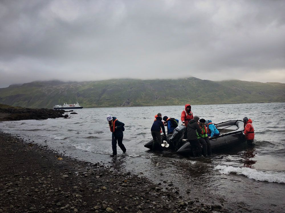 Our first landing of the trip, Camp Millar, showed us the myriad of life that the summer has to offer here. Arctic foxes, nesting dovekies, gulls and kittiwakes, reindeer and skuas, all striving to feed and breed as much as possible before the cold, dark months of winter arrive. Hiking along the slopes as the fog lifted the sense that we have truly arrived in a strange new land starts to permeate our very consciousness.